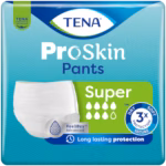 Majtki chłonne TENA Pants ProSkin Super oferują do 100% zabezpieczenia w średnim i ciężkim stopniu nietrzymania moczu, zapewniając szybką chłonność i długotrwałe uczucie suchości w ciągu dnia i nocy. Jednorazowe majtki na nietrzymanie moczu, stworzone z myślą o kobietach i mężczyznach preferujących aktywny styl życia na co dzień.